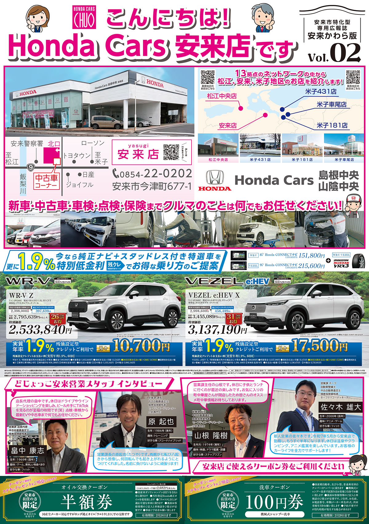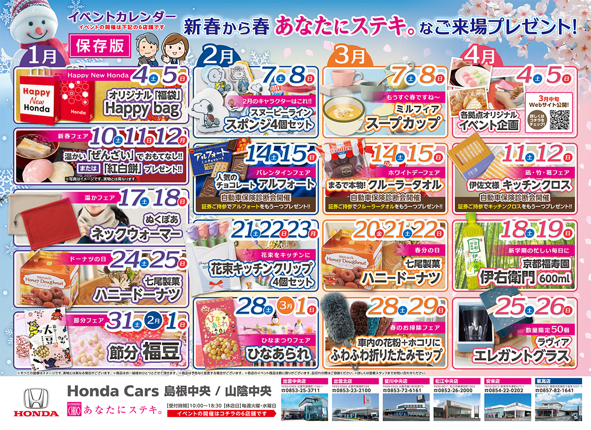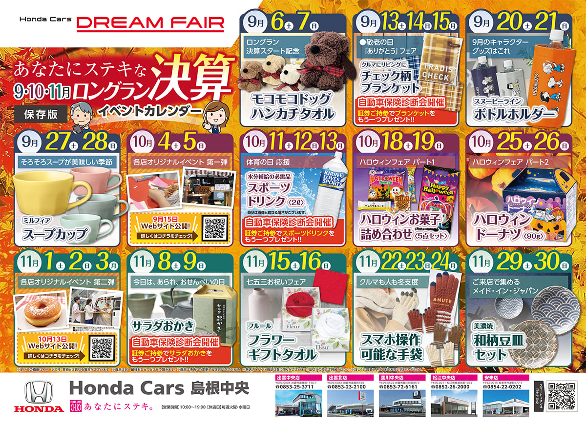 ●:全店休店日 ●:松江中央店・安来店の休店日 営業時間/10:00〜19:00